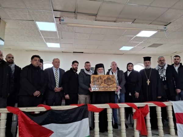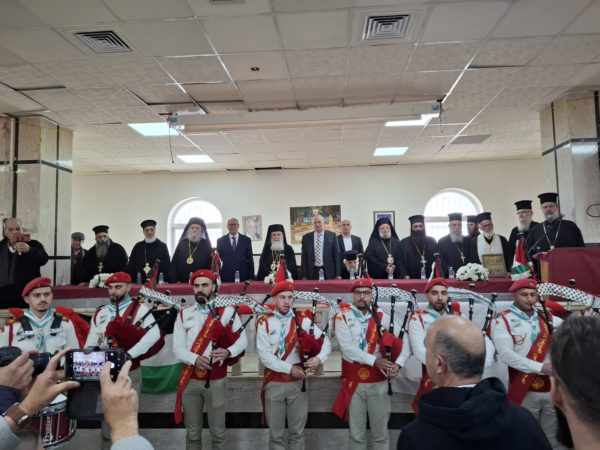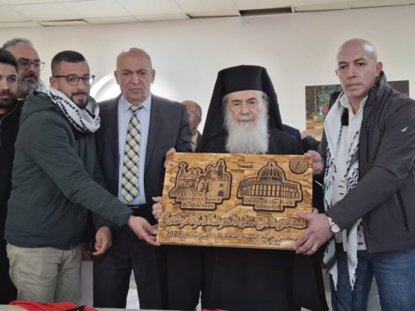 Ἀκολούθως ἔλαβε χώραν δεξίωσις, παρόντων τοῦ Ὑπουργοῦ Τουρισμοῦ τῆς Παλαιστινιακῆς Αὐτονομίας κ. Χάϊκ καί τοῦ Δημάρχου τῆς πόλεως κ. Ἠλιάς Σαΐντ, τῶν Ἐπιτρόπων καί ἄλλων προσωπικοτήτων τοῦ Παλαιστινιακοῦ κράτους. Εἰς τόν Μακαριώτατον ἐπεδόθη ἀνάγλυφος εἰκών τοῦ Ναοῦ τῆς Ἀναστάσεως καί τῆς Βασιλικῆς τῆς Βηθλεέμ ἐκ μέρους τοῦ Σώματος τῶν Προσκόπων καί πίναξ τῆς Γεννήσεως τοῦ Κυρίου ἐκ μέρους τοῦ Προέδρου Ἀμποῦ Μάζεν.
