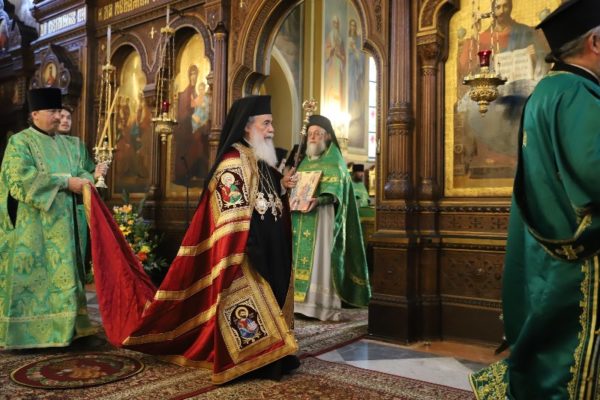 Τα γεγονότα, τα οποία συνετελέσθηκαν κατά την ημέρα της Πεντηκοστής εν τω Υπερώω της Σιών παραμένουν πάντα το πρότυπο για την εν Αγίω Πνεύματι και την αγάπη του Χριστού ενότητα των αγίων αδελφών Ορθοδόξων Εκκλησιών υπογράμμισε ο Πατριάρχης Ιεροσολύμων κ.κ. Θεόφιλος από τον μεγαλοπρεπή Ναό της Αγίας Τριάδος της Ρωσικής Πνευματικής Αποστολής (MISSIA) του Πατριαρχείου Μόσχας στα Ιεροσόλυμα.