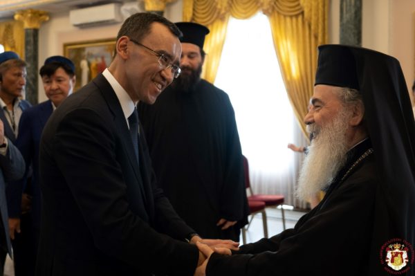 Στην Ιερουσαλήμ βρέθηκε τις προηγούμενες δύο ημέρες ο Μανουέλ Ασιμπάγιεφ, Πρόεδρος της Γερουσίας του Κοινοβουλίου της Δημοκρατίας του Καζακστάν και επικεφαλής της Γραμματείας του Συνεδρίου Ηγετών Παγκοσμίων και Παραδοσιακών θρησκειών, μαζί με αντιπροσωπεία αποτελούμενη από υπουργούς, βουλευτές και αξιωματούχους. Σύμφωνα με το Πατριαρχείο η επίσκεψη πραγματοποιήθηκε σε απόδειξη της συνεχιζόμενης δέσμευσης για την προώθηση της θρησκευτικής αρμονίας και την καλλιέργεια της ειρηνικής συνύπαρξης. Η στρογγυλή τράπεζα ήταν αφιερωμένη στο 7ο Συνέδριο Ηγετών Παγκοσμίων και Παραδοσιακών θρησκειών το οποίο είχε πραγματοποιηθεί στην Αστάνα.