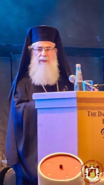 Ο Μακαριώτατος τόνισε ότι στους Αγίους Τόπους η χριστιανική παρουσία έρχεται αντιμέτωπη με πρωτοφανείς απειλές και επιθέσεις από ριζοσπαστικές Ισραηλινές ομάδες που απορρίπτουν τις αξίες που υποστηρίζουν οι μεγάλες μονοθεϊστικές παραδόσεις. Ο Πατριάρχης εξέφρασε τη λύπη του για την τρέχουσα κατάσταση, καθώς οι Άγιοι Τόποι θα έπρεπε ιδανικά να χρησιμεύουν ως πρότυπο για τα έθνη, δείχνοντας πως διαφορετικοί πολιτισμοί, θρησκείες και εθνότητες μπορούν να συνυπάρξουν και να ανθίσουν μαζί. Δυστυχώς, η πραγματικότητα απέχει πολύ από αυτό το όραμα στη γη που ενσαρκώνει τη θεϊκή- ανθρώπινη συνάντηση.