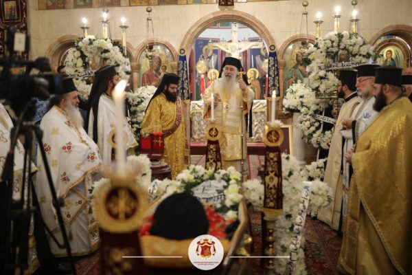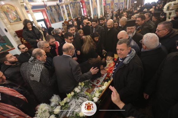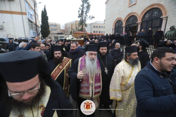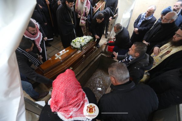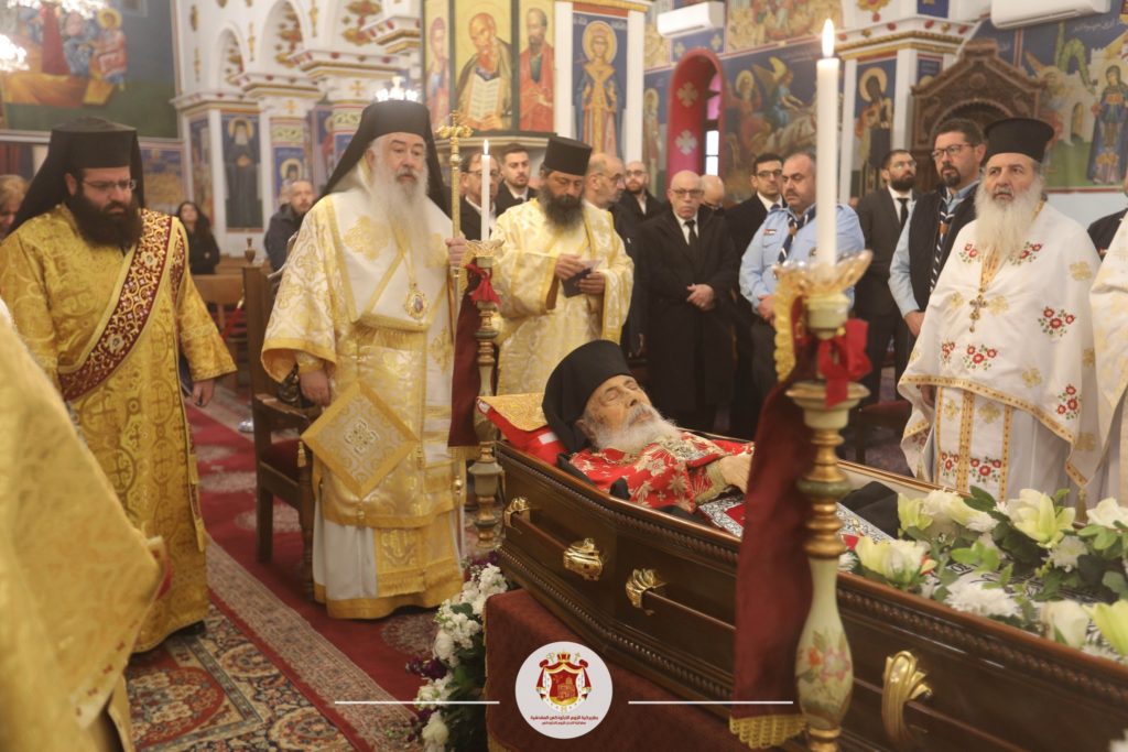 Η νεκρώσιμος ακολουθία εψάλη στον εν Αμμάν Ιερό Ναό της Υπαπαντής, προεξάρχοντος του Σεβασμιωτάτου Αρχιεπισκόπου Κυριακουπόλεως κ. Χριστοφόρου με τη συμμετοχή όλου του κλήρου του Πατριαρχείου στην Ιορδανία και πλήθους λαού για να τιμήσουν την προσφορά του στο ποίμνιο και τον Ιορδανικό λαό.