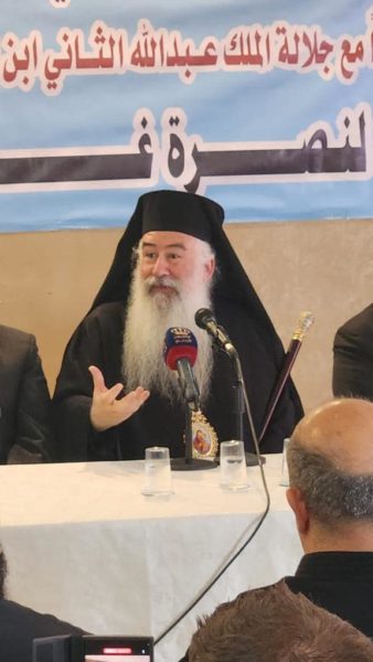 Στη συνάντηση μίλησε ο Σεβ. Αρχιεπίσκοπος Κυριακουπόλεως κ. Χριστοφόρος ο οποίος χαρακτήρισε ως ιστορική τη στάση του Βασιλιά Αμπντάλα να στηρίξει τον Παλαιστινιακό λαό σε αυτή τη δύσκολη συγκυρία.