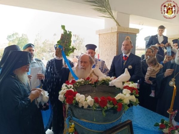 Ἁγιαζομένων τῶν ὑδάτων, ἐψάλλετο καί πάλιν τό «ἐν Ἰορδάνῃ βαπτιζομένου Σου Κύριε», ἐν χαρᾷ καί ἀγαλλιάσει ὑπό τοῦ συμμετέχοντος περιωρισμένου ἀριθμοῦ προσκυνητῶν, λόγῳ τῆς ἐμπολέμου καταστάσεως, παρουσίᾳ τοῦ Γενικοῦ Προξένου τῆς Ἑλλάδος εἰς τά Ἱεροσόλυμα κ. Δημητρίου Ἀγγελοσοπούλου καί τοῦ Πρέσβεως τῆς Γεωργίας κ. Λάσα.