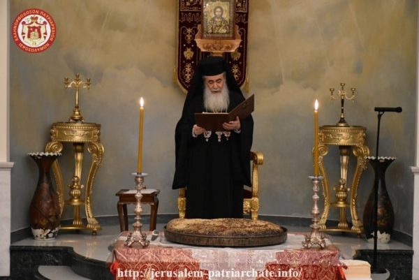 Μετά δέ τοῦ ὑμνῳδοῦ εἴπωμεν: «Σῶτερ τοῦ παντός καί πρύτανι, δημιουργέ καί παντοκράτορ τῆς κτίσεως, ταῖς δεήσεσι, τῆς ἀλοχεύτως τεκούσης σε, τήν εἰρήνην τῷ κόσμῳ σου δώρησαι, τηρῶν τήν Ἐκκλησίαν, ἀκαταπαύστως ἀστασίαστον». Προσέτι δέ Κύριε, ὁ καιρούς καί χρόνους ἐν τῇ ἰδίᾳ ἐξουσίᾳ θέμενος, εὐλόγησον τόν στέφανον τοῦ ἐνιαυτοῦ τῆς Χρηστότητός Σου, φυλάττων ἐν εἰρήνῃ καί κατ’ ἄμφω ὑγιείᾳ τήν γεραράν Ἁγιοταφιτικήν ἡμῶν Ἀδελφότητα, τό εὐσεβές Χριστεπώνυμον ἡμῶν ποίμνιον, τήν ἁγίαν Πόλιν Ἱερουσαλήμ καί τό εὐσεβές γένος τῶν Ρωμαίων Ὀρθοδόξων. Ἀμήν. Αἴσιον, εὐτυχές, εὐλογημένον καί ὑγιεινόν τό Νέον Ἔτος 2021.Ἔτη πολλά!”.