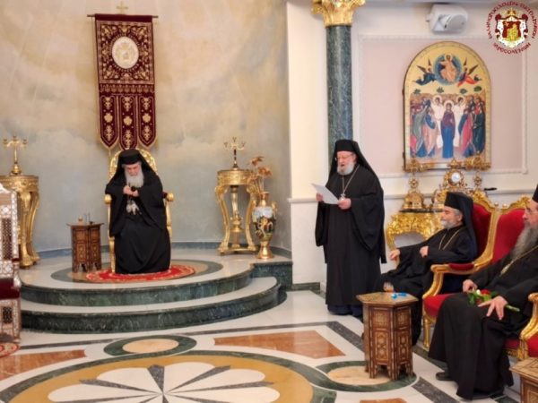 Μετά ταύτα ακολούθησε πανηγυρική άνοδος εις τα Πατριαρχεία, ένθα υπεβλήθησαν τα σεβάσματα εις τον Μακαριώτατον και Ούτος προσεφώνησε διά της κάτωθι προσφωνήσεως Αυτού: