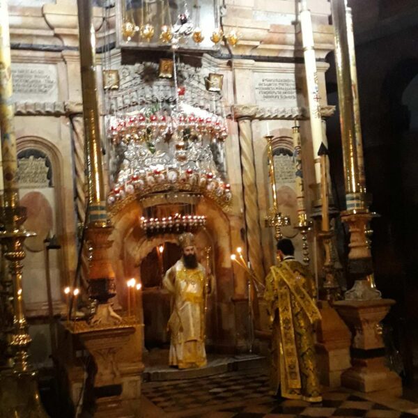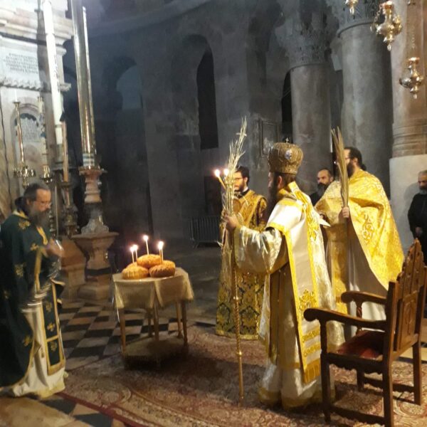 Στη Θεία Λειτουργία, που τελέστηκε στον κεκλεισμένων των θυρών Πανίερο Ναό της Αναστάσεως, προεξήρχε ο Σεβ. Αρχιεπίσκοπος Ιεραπόλεως κ. Ισίδωρος.