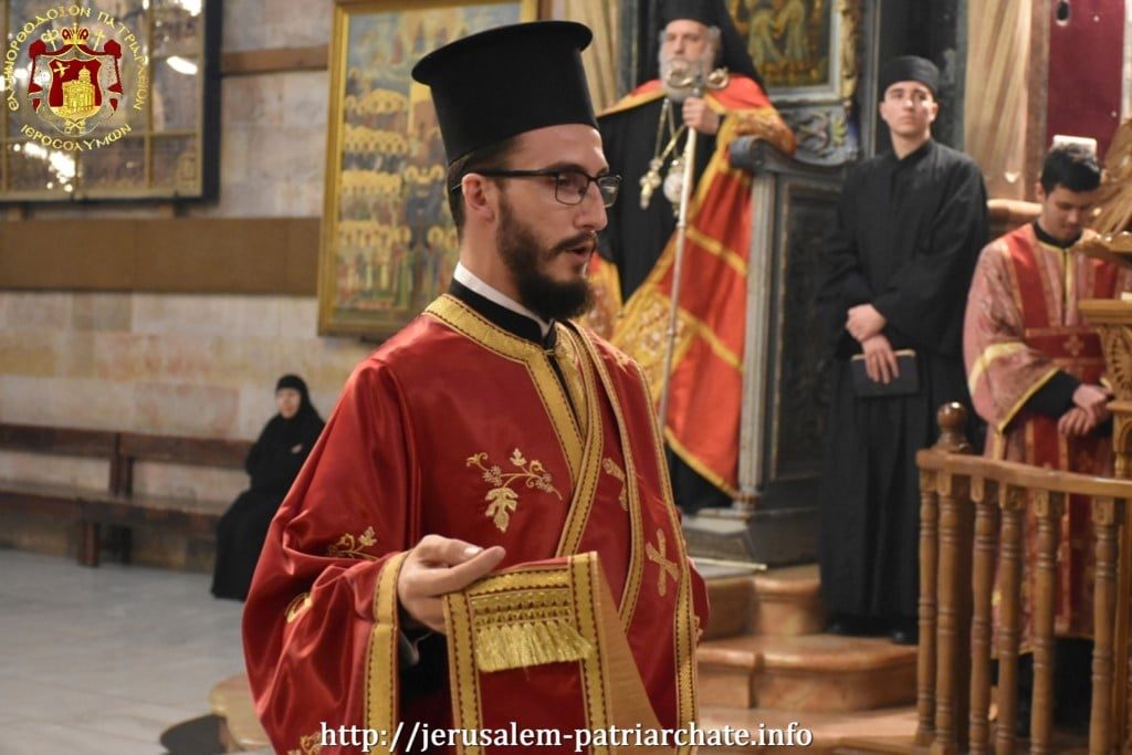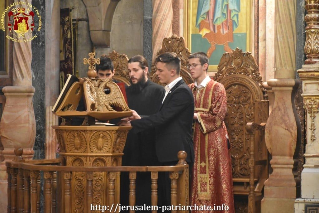 Ἡ ἑορτή αὐτή ἑωρτάσθη διά «Παρρησίας» εἰς τόν Πανίερον Ναόν τῆς Ἀναστάσεως δι’ Ἑσπερινοῦ ἀφ’ ἑσπέρας εἰς τό Καθολικόν τοῦ Ναοῦ καί διά θείας Λειτουργίας τήν πρωΐαν τῆς Κυριακῆς, εἰς τόν Πανάγιον Τάφον ὧν προεξῆρξεν ὁ Σεβασμιώτατος Μητροπολίτης Καπιτωλιάδος κ. Ἡσύχιος, συλλειτουργούντων αὐτῷ τοῦ Τελετάρχου Ἀρχιμανδρίτου π. Βαρθολομαίου καί τοῦ Ἱεροδιακόνου Πατρικίου, ψαλλούσης τῆς χορῳδίας ὑπό τόν κ. Βασίλειον Γκοτσόπουλον καί μετεχόντων πιστῶν ἐξ Ἱεροσολύμων ἐντοπίων, οὐχί δέ εἰσέτι προσκυνητῶν ὡς μή ἐλθόντων.