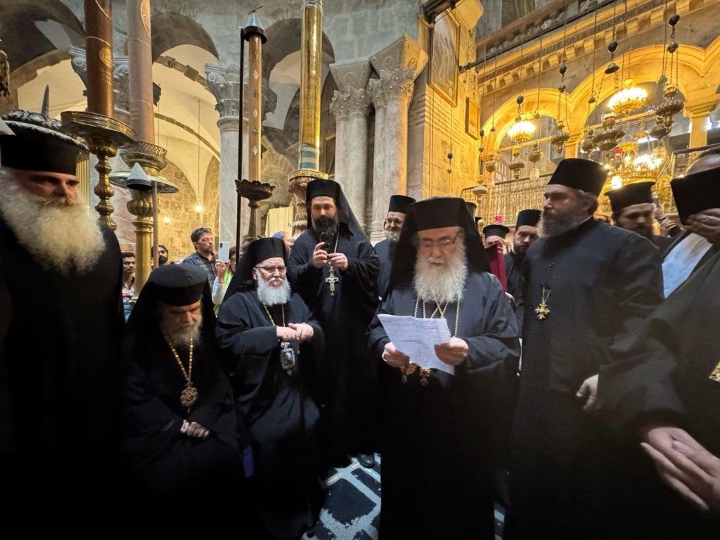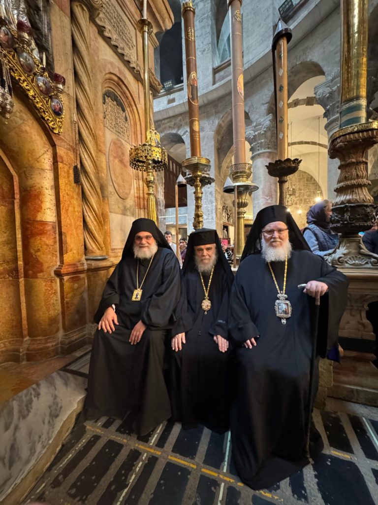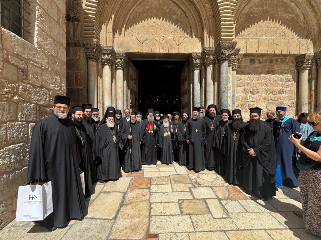 Ἡ ἐν Χριστῷ ἀδελφική προσκυνηματική ἐπίσκεψις Ὑμῶν εἰς τούς Ἁγίους Τόπους τῆς Μητροπόλεως τῶν Ἐκκλησιῶν καί τοῦ κατοικητηρίου τοῦ Θεοῦ ἐφαίδρυνε τάς καρδίας τῆς Ἁγιοταφιτικῆς ἡμῶν Γεραρᾶς Ἀδελφότητος, ἀλλά καί τοῦ δοκιμαζομένου ὑπό τῶν πολεμικῶν κρίσεων εὐσεβοῦς Ρωμαιορθοδόξου ἡμῶν ποιμνίου.