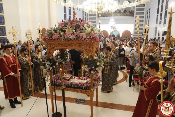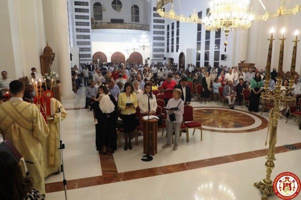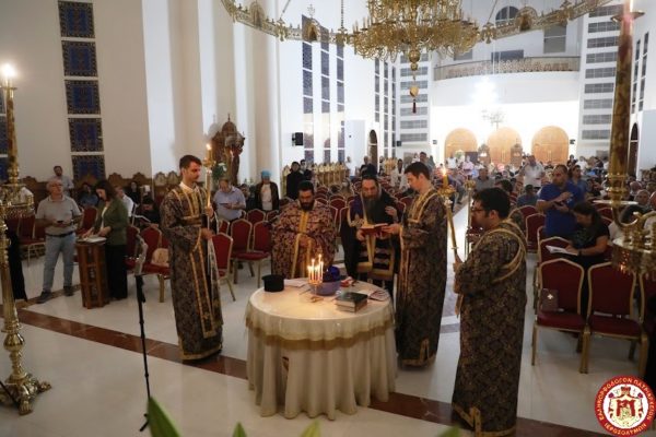 Τις ιερές ακολουθίες τέλεσε ο Σεβασμιώτατος Αρχιεπίσκοπος Καττάρων κ. Μακάριος μετά του εφημερίου π. Δημητρίου. Η προσέλευση των πιστών ήταν πολυπληθέστερη των παρελθόντων ετών, με συμμετοχή στην Θεία Κοινωνία πιστών από διάφορες πόλεις του Εμιράτου και από Ριάντ της Σαουδικής Αραβίας.