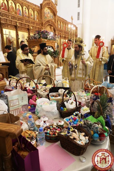 Στο τέλος της Θείας Λειτουργίας της Αναστάσεως ακολούθησε η ευλογία των Πασχαλινών αυγών και ο Σεβασμιώτατος διένειμε το αντίδωρο και τα κόκκινα αυγά στους πιστούς, ευχόμενος την Πασχάλιο χαρά του Αναστάντος Χριστού.
