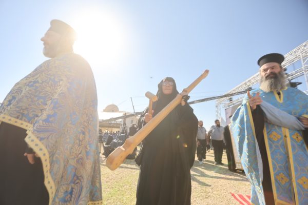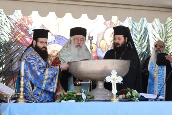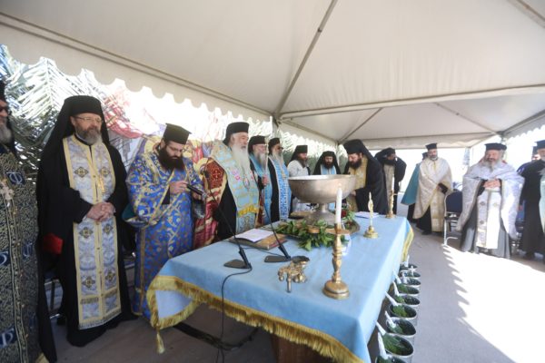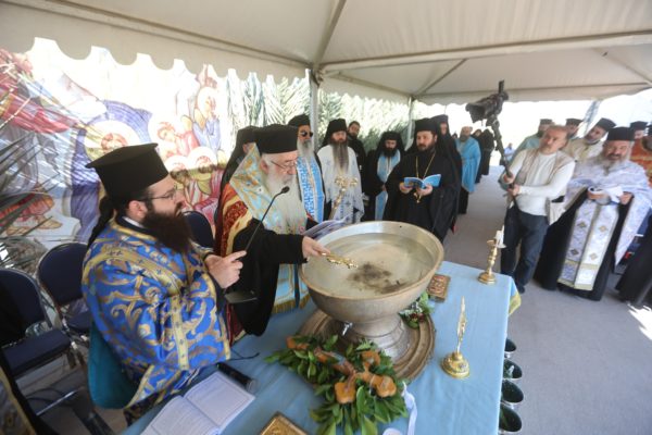 Της Ακολουθίας και της τελετής του Καθαγιασμού των υδάτων προέστη ο Σεβασμιώτατος Αρχιεπίσκοπος Κυριακουπόλεως κ. Χριστοφόρος πλαισιωμένος από πλειάδα ιερέων και παρουσία υψηλόβαθμων κυβερνητικών αξιωματούχων.