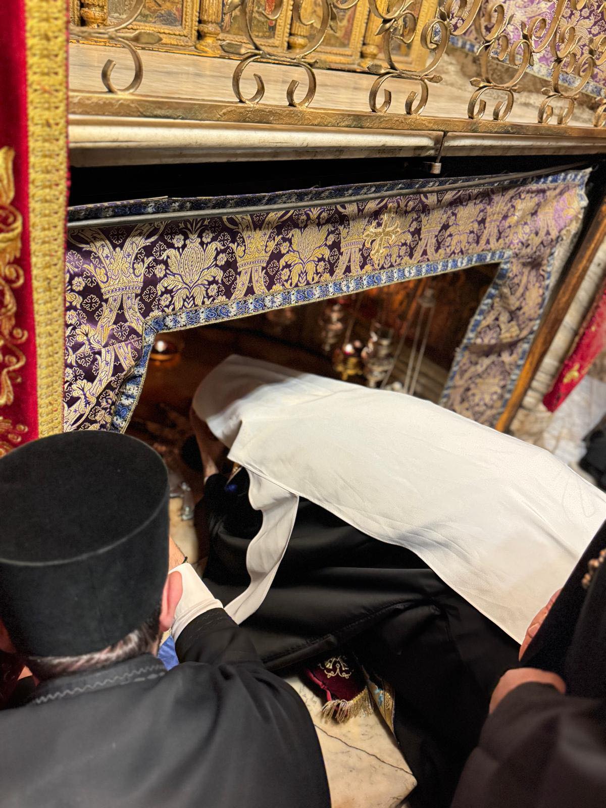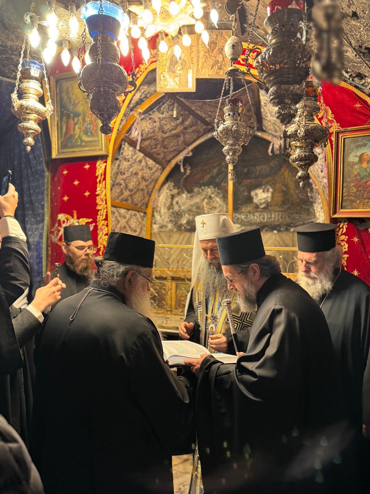 “Σε αυτόν τον τόπο, ο ουρανός και η γη, ο Θεός και ο άνθρωπος, συμφιλιώθηκαν, γιατί εδώ ο Υιός του Θεού έγινε άνθρωπος και γεφύρωσε το αγεφύρωτο – το οντολογικό χάσμα μεταξύ του ακτίστου και του κτιστού, μεταξύ Θεού και ανθρώπου. Εδώ ο άνθρωπος συμφιλιώνεται με τον Θεό” ανέφερε ο Πατριάρχης κ.κ. Πορφύριος και τόνισε: