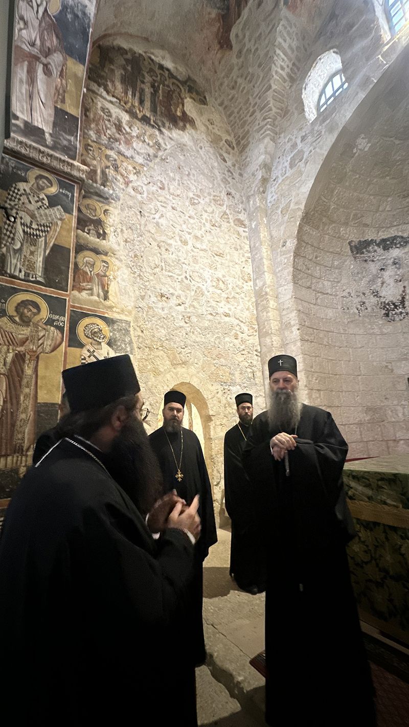 Ο Πατριάρχης Σερβίας έτυχε και πάλι θερμής υποδοχής από τον Ηγούμενο και τους αδελφούς της Ιεράς Μονής και έπειτα προσκύνησε τα λείψανα του κτήτορα της Μονής, Αγίου Σάββα του Ηγιασμένου, που φυλάσσονται στον Καθεδρικό Ναό που είναι αφιερωμένος στον Ευαγγελισμό της Θεοτόκου. Με την ευκαιρία αυτή, ο Πατριάρχης κ.κ. Πορφύριος είπε: “Εδώ είναι οι ρίζες της πνευματικότητάς μας, χριστιανικής και ορθόδοξης, αλλά και σερβικής πνευματικότητας“.