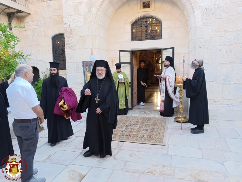 Την παραμονή της εορτής τελέστηκε Εσπερινός από ιερείς του Πατριαρχείου και σήμερα το πρωί τελέστηκε η Θεία Λειτουργία προεξάρχοντος του Σεβασμιωτάτου Μητροπολίτου Διοκαισαρείας κ. Βενεδίκτου, συλλειτουργούντων του βοηθού Πατριαρχικού Επιτρόπου στη Βηθλεέμ Αρχιμανδρίτου π. Πολυκάρπου, των Αρχιμανδριτών π. Κλαυδίου και π. Αμφιλοχίου, Αραβοφώνων Πρεσβυτέρων και άλλων Ορθοδόξων Ιερέων, ψάλλοντος του Πρωτοψάλτου του Ναού της Αναστάσεως κ. Αγγέλου Γιαννοπούλου και μετεχόντων εν ευλαβεία πιστών, εντοπίων και προσκυνητών.