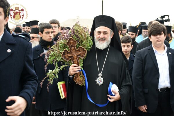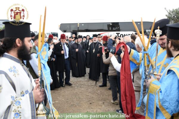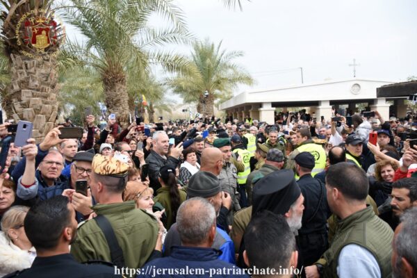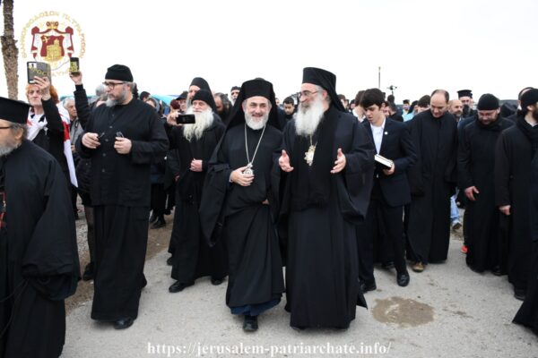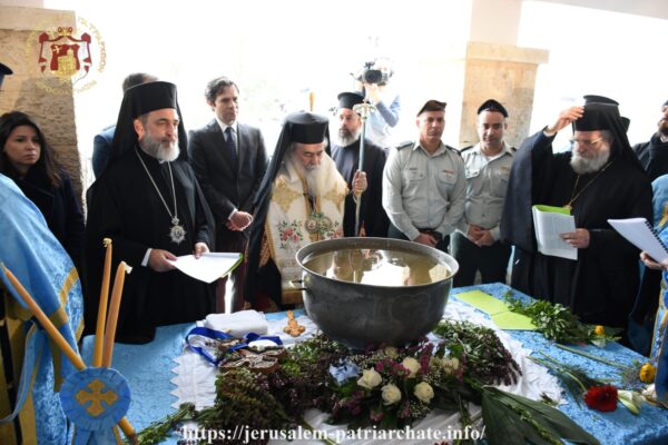 Ενταύθα επί της εξέδρας ετελέσθη ο Εσπερινός και ο Αγιασμός και εν τέλει ο Μακαριώτατος κατήλθεν εις αυτά τα ύδατα του Ιορδάνου υπερπλήρη και εμβάς εις πλοιάριον, έρριψεν εις αυτά τον σταυρόν, εν ω εν χαρά και αγαλλιάσει εψάλλετο το «Εν Ιορδάνη βαπτιζομένου σου Κύριε», εν τω τόπω, εν ω όντως ο Κύριος διά την ελευθερίαν και την σωτηρίαν ημών εβαπτίσθη, ότε και εφανερώθη η Αγία Τριάς, ο Κύριος ημών Ιησούς Χριστός, το Άγιον Πνεύμα εν είδει περιστεράς και η φωνή του Πατρός λέγοντος «ούτός εστι ο Υιός μου ο αγαπητός εν ω ευδόκησα».