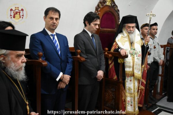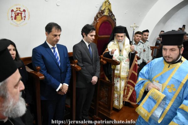 Ευθύς αμέσως, ο Μακαριώτατος ανεχώρησε διά την Ιεριχώ. Ενταύθα επεσκέφθη το ηγουμενείον της Μονής του Προφήτου Ελισσαίου και το Νομαρχείον και διά της σιδηράς συνοριακής Πύλης μεταξύ Παλαιστινιακής Αυτονομίας της Ιεριχούς και της Ισραηλινής Στρατιωτικής και Πολιτικής Διοικήσεως και έφθασεν εις την Μονήν του Αγίου Ιωάννου του Προδρόμου, ένθα επεφυλάχθη Αυτώ θερμή υποδοχή.