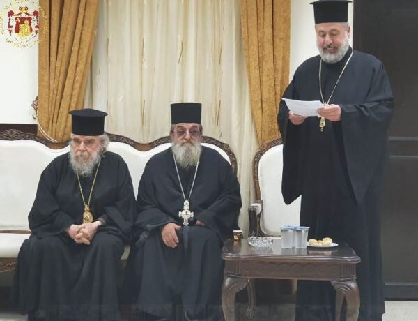 Αγιάσας τους Πατέρας και το Εκκλησίασμα, ο Μακαριώτατος ανήλθεν εν πομπή εις τα Πατριαρχεία, ένθα ο εφημέριος του Αγίου Κωνσταντίνου ηγίασε την αίθουσαν ως και ο εφημέριος του αγίου Ιακώβου του Αδελφοθέου, μετά την θείαν Λειτουργίαν και τον αγιασμόν, προεξάρχοντος του Σεβασμιωτάτου Αρχιεπισκόπου Πέλλης κ. Φιλουμένου.