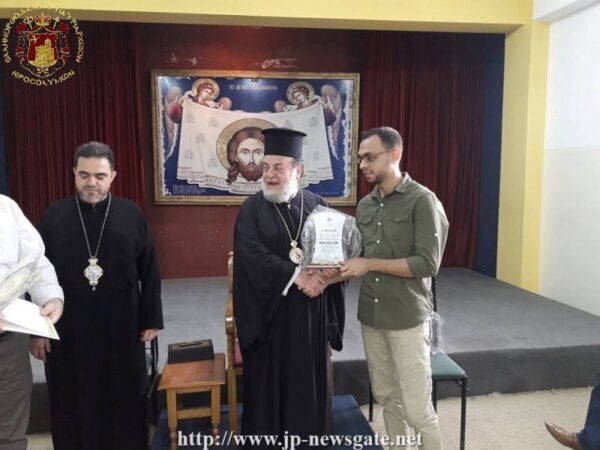 Πραγματοποιήθηκε υπό την αιγίδα του Σεβ. Αρχιεπισκόπου Τιβεριάδος κ. Αλεξίου, αντιπροσώπου του Πατριαρχείου Ιεροσολύμων στη Γάζα, η τελετή λήξης της σχολικής χρονιάς 2018 – 2019 και παράλληλα η αποφοίτηση των μαθητών της Γ’ Λυκείου.