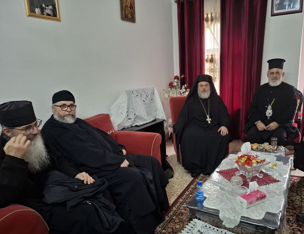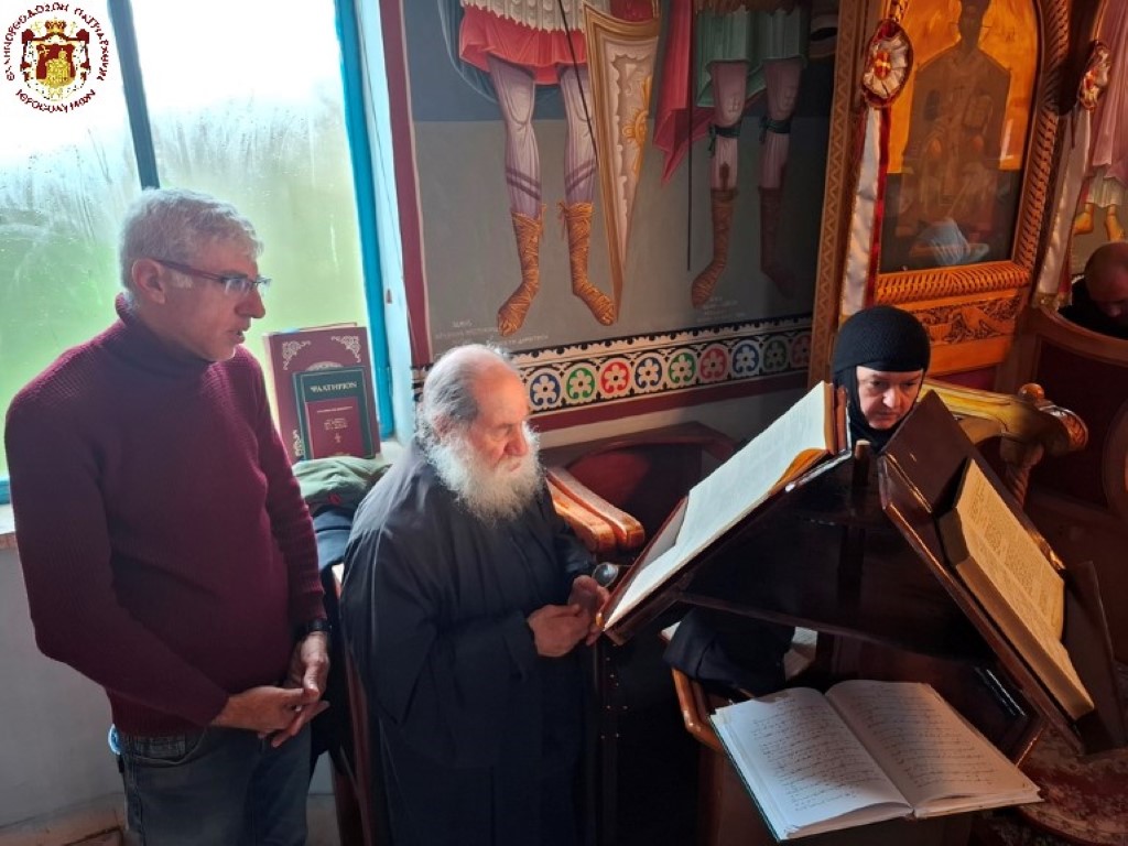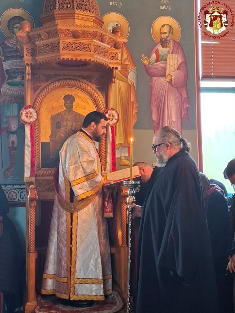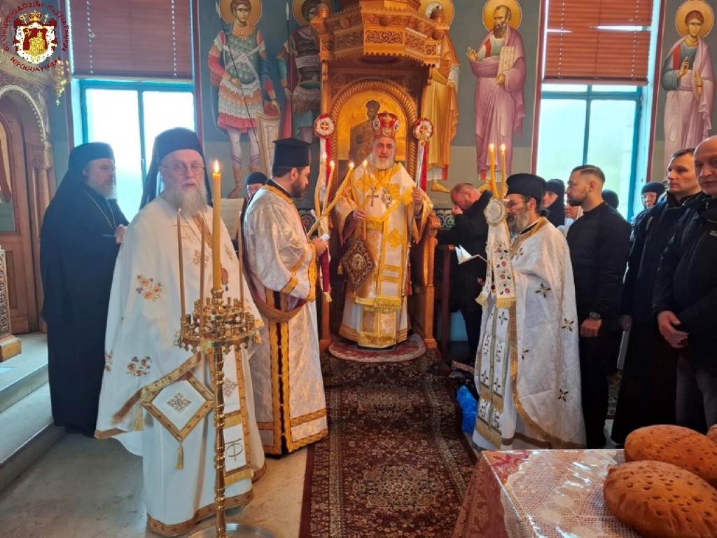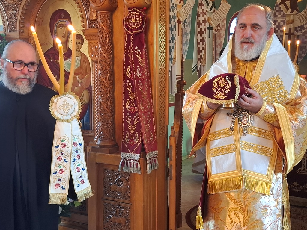 Την Αρχιερατική Συνοδεία και το εκκλησίασμα δεξιώθηκε ο καλώς επιμελούμενος των της Μονής Αρχιμανδρίτης π. Επιφάνιος.