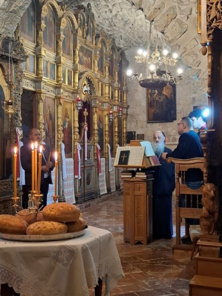 Μετά τη Θεία Λειτουργία, ο ηγούμενος και ανακαινιστής του Ιερού Ναού της Μονής, Σεβασμιώτατος Αρχιεπίσκοπος Λύδδης κ. Δημήτριος, παρέθεσε κέρασμα στο ηγουμενείο και στον προαύλιο χώρο του Ναού.