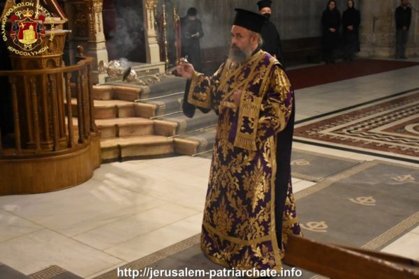 Προεξάρχοντος του Πατριάρχη Ιεροσολύμων κ.κ. Θεοφίλου εψάλη χθες, Τετάρτη 14 Απριλίου 2021,  ο Μέγας Κανών, ποίημα του αγίου Ανδρέου Αρχιεπισκόπου Κρήτης του Ιεροσολυμίτου, στον μοναστηριακόν Ναόν των Αγίων Κωνσταντίνου και Ελένης.