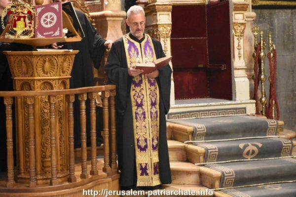 Ομοίως εψάλη ο Μέγας Κανών και στον Πανίερο Ναό της Αναστάσεως, προεξάρχοντος του Σεβασμιωτάτου Αρχιεπισκόπου Γεράσων κ. Θεοφάνους, ψαλλόντων του Ιεροδιακόνου Συμεών, του κ. Βασιλείου Γκοτσοπούλου και των μαθητών της Πατριαρχικής Σχολής.