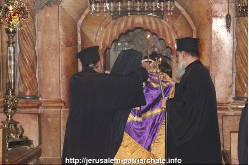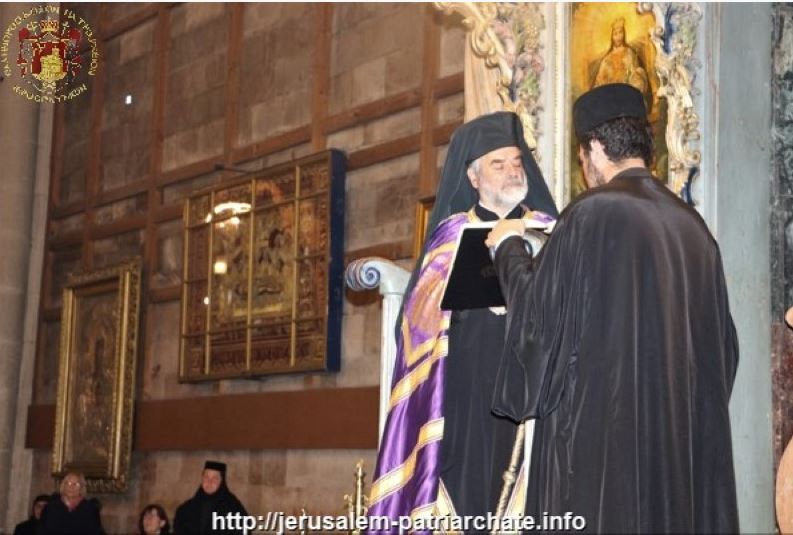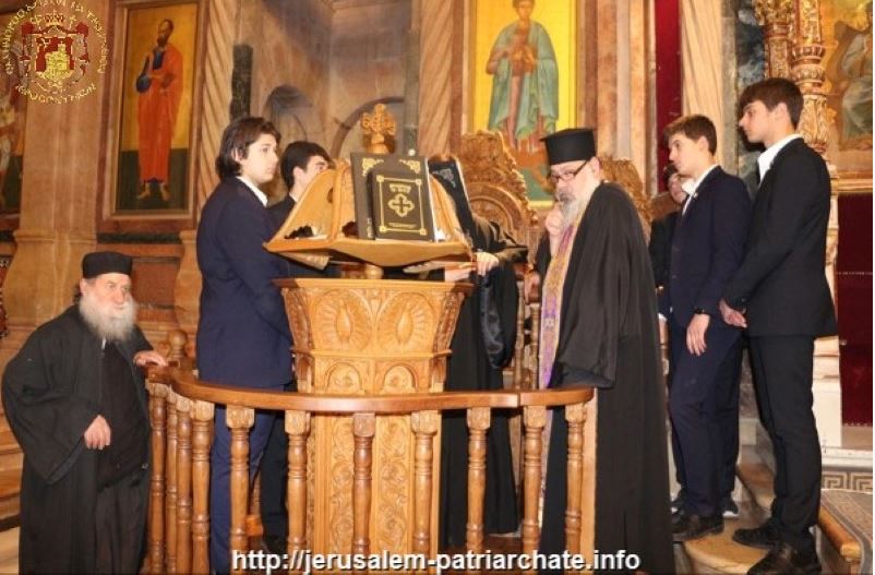 Τῆς τελετῆς ταύτης ἐχοροστάτησεν ὁ Σεβασμιώτατος Ἀρχιεπίσκοπος Γεράσων Θεοφάνης, ψάλλοντος τοῦ Πρωτοψάλτου τοῦ Πανιέρου Ναοῦ τῆς Ἀναστάσεως κ. Κωνσταντίνου Σπυροπούλου καί βοηθούντων τοῦ Ἀρχιδιακόνου Μάρκου καί τῶν μαθητῶν τῆς Πατριαρχικῆς Σχολῆς Σιών.