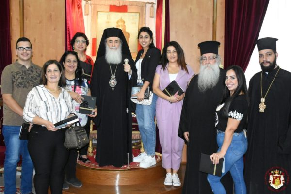 Τον Μακαριώτατο Πατριάρχη Ιεροσολύμων κ.κ. Θεόφιλο Β’ επισκέφθηκε σήμερα το πρωί (11 Αυγούστου 2022) ο Σεβασμιώτατος Μητροπολίτης Διοκαισαρείας και Πατριαρχικός Επίτροπος Βηθλεέμ κ. Βενέδικτος, που συνοδευόταν από τον π. George Jackman, στον οποίον δώρισε έναν σταυρό και παιδιά με κατηχητές του κυριακάτικου σχολείου από την Βηθλεέμ.