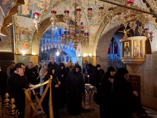 Συμπροσευχόμενοι παρέστησαν μοναχοί και μοναχές και μέλη της Εκκλησίας των Ιεροσολύμων.