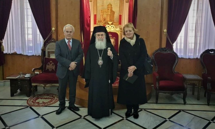 Ο Πατριάρχης Ιεροσολύμων κ.κ. Θεόφιλος υποδέχθηκε χθες τον κ. Γεώργιο Ναούμ, ιατρό, Πρόεδρο της Ομοσπονδίας Συλλόγου Ιεροψαλτών Ελλάδος και Διευθυντή του Ιατρικού Κέντρου Αμαρουσίου και Ψυχικού μετά της συζύγου του.
