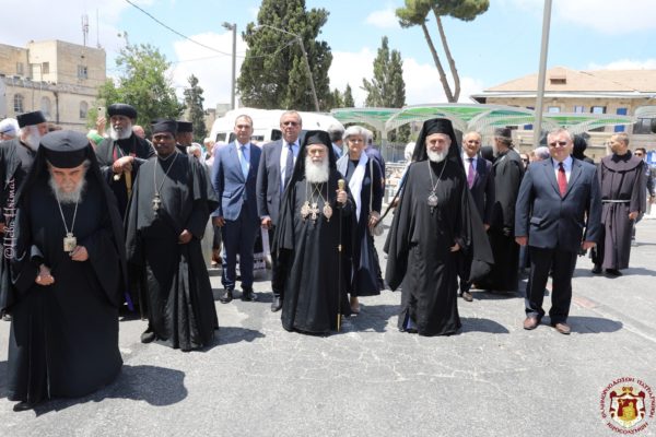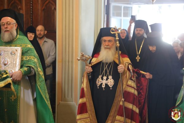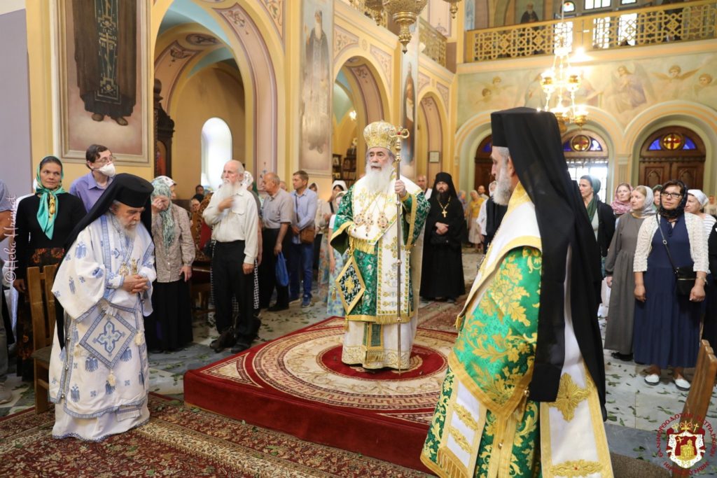 Μετά την απόλυση της Λειτουργίας, ο Μακαριώτατος ευχαρίστησε τον αρχηγό της Ρωσικής Εκκλησιαστικής Αποστολής και στους προσκυνητές που βρέθηκαν στο ναό και συμμετείχαν στη μεγάλη εορτή της Εκκλησίας. Ευχήθηκε ακόμη στον Αρχιμανδρίτη Αλέξανδρο (Elisov) και σε όλους τους κληρικούς της Αποστολής να συνεχίσουν την υπηρεσία στην Ιερά Πόλη της Ιερουσαλήμ προς όφελος της ενίσχυσης της ενότητας των δύο Ορθοδόξων Εκκλησιών – Ιερουσαλήμ και Ρωσικής – και προς πνευματικό όφελος δεκάδων χιλιάδων Ρώσων προσκυνητών που επισκέπτονται τους Αγίους Τόπους κάθε χρόνο.