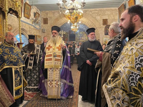 Στο πλαίσιο της προετοιμασίας για την αρχή της Αγίας και Μεγάλης Τεσσαρακοστής και της ακολουθίας του Μικρού Αποδείπνου, ο Μακαριώτατος Πατριάρχης Ιεροσολύμων κ.κ. Θεόφιλος Γ΄ ανέγνωσε την Συγχωρητική Ευχή στο μοναστηριακό Ναό των Αγίων Κωνσταντίνου και Ελένης το απόγευμα της Κυριακής της Τυρινής 13/26 Φεβρουαρίου 2023.
