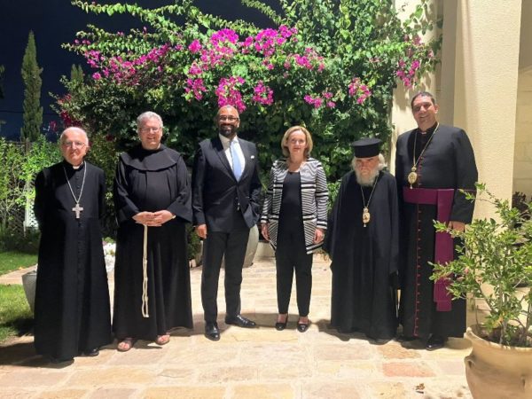 Το απόγευμα της Τρίτης, 12 Σεπτεμβρίου, στη Βρετανική Κατοικία στην Ιερουσαλήμ, ο Υπουργός Εξωτερικών του Ηνωμένου Βασιλείου, Τζέιμς Κλέβερλι, συναντήθηκε με εκκλησιαστικούς ηγέτες που εκπροσωπούν διάφορες εκκλησίες στους Αγίους Τόπους. Στη συνάντηση παρέστη ο Γέρων Αρχιγραμματεύς Σεβασμιώτατος Αρχιεπίσκοπος Κωνσταντίνης κ. Αρίσταρχος ο οποίος εκπροσώπησε τον Μακαριώτατο Πατριάρχη Ιεροσολύμων κ.κ. Θεόφιλο Γ’.