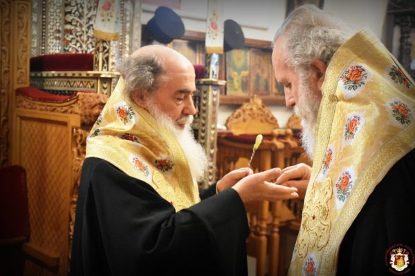 “Τό ἑσπέρας τῆς Τετάρτης, 23ης Δεκεμβρίου / 5ης Ἰανουαρίου 2022 μετά τήν ἀκολουθίαν τοῦ Ἑσπερινοῦ, ἔλαβε χώραν εἰς τόν Ἱερόν Ναόν τῶν Ἁγίων Κωνσταντίνου καί Ἑλένης τῆς Ἁγιοταφιτικῆς Ἀδελφότητος τό Ἱερόν Εὐχέλαιον ὡς προετοιμασία διά τήν συμμετοχήν εἰς τήν Δεσποτικήν ἑορτήν τῶν Χριστουγέννων. Μετά τήν ἀνάγνωσιν τοῦ Κανόνος, τῶν τροπαρίων, τῶν Ἀποστόλων καί τῶν Εὐαγγελίων, τῶν ἁγιαστικῶν εὐχῶν, τοῦ ἐλαίου καθαγιασθέντος, ὁ Μακαριώτατος ηὐχελίασε τούς Ἀρχιερεῖς, οἱ Ἀρχιερεῖς τόν Μακαριώτατον, ὁ Μακαριώτατος δέ καί οἱ Ἀρχιερεῖς τούς Ἱερομονάχους, Ἱερεῖς, Διακόνους, Μοναχούς καί Μοναζούσας, ἐν ᾧ ἀντηλλάσετο ἡ εὐχή «καλά Χριστούγεννα»”, αναφέρει η ανακοίνωση της Αρχιγραμματείας.