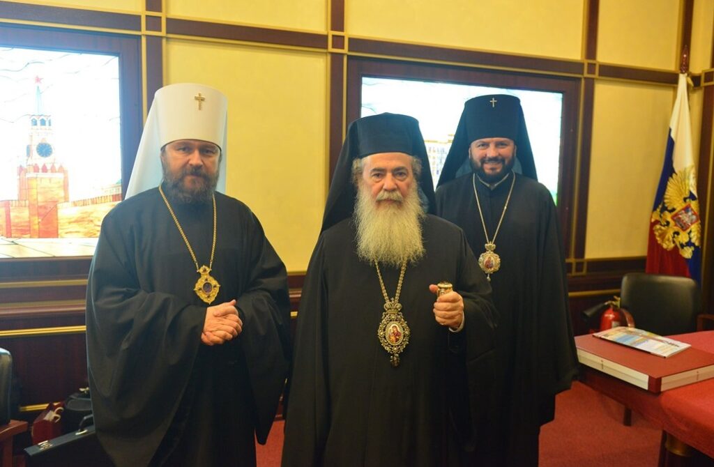 Ολοκληρώθηκε η επίσκεψη του Πατριάρχη Ιεροσολύμων κ.κ. Θεοφίλου στη Μόσχα. Τον Μακαριώτατο συνόδευαν ο Αρχιεπίσκοπος Κωνσταντίνης Αρίσταρχος και ο Αρχιδιάκονος Μάρκος Χέντερσον.