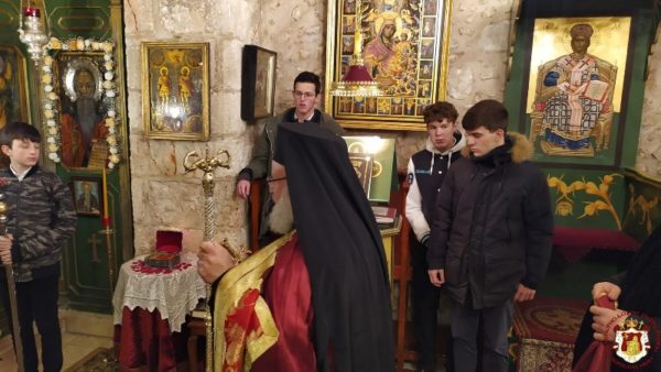 Προς τιμήν του Αγίου τελέσθηκε Εσπερινός την παραμονή της εορτής και Θεία Λειτουργία το πρωί της εορτής, προεξάρχοντος του Σεβασμιωτάτού Αρχιεπισκόπου Πέλλης κ. Φιλουμένου, συλλειτουργούντων του Αρχιμανδρίτου π. Μακαρίου, των Αραβοφώνων Πρεσβυτέρων π. Χαραλάμπους και π. Νεκταρίου και του Ιεροδιακόνου π. Συμεών, ψάλλοντος του κ Βασιλείου Γκοτσοπούλου και των μαθητών της Πατριαρχικής Σχολής Σιών και προσευχομένων μοναχών, μοναζουσών και άλλων πιστών.