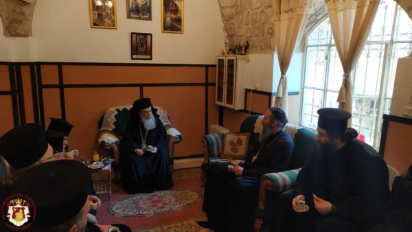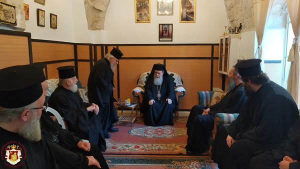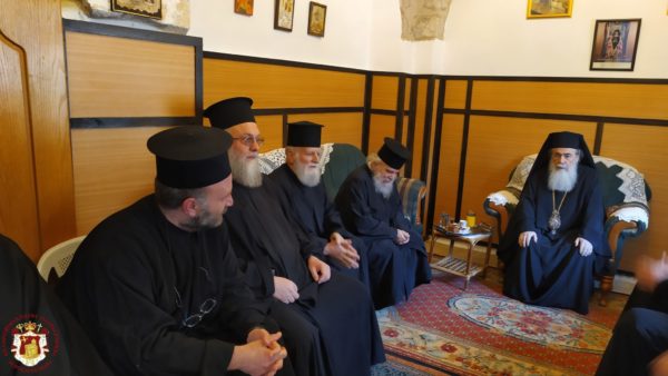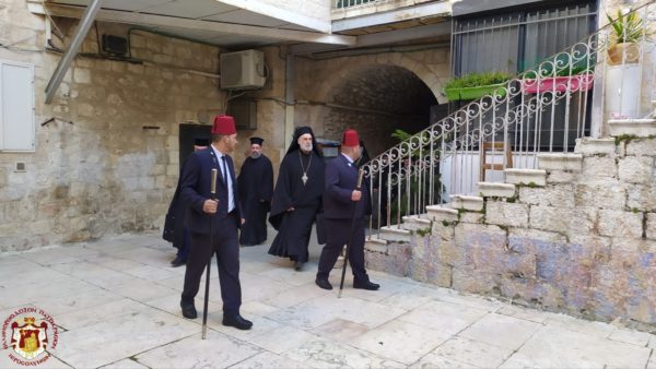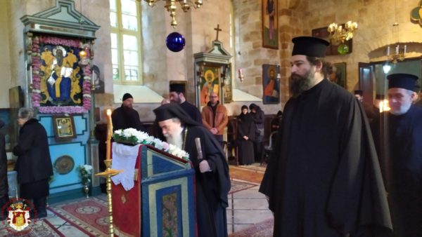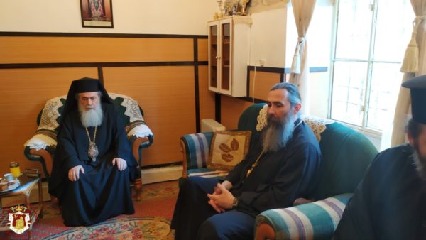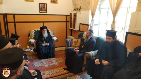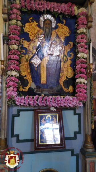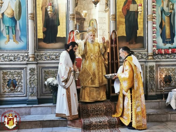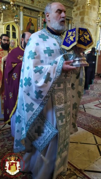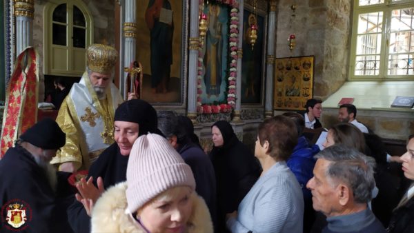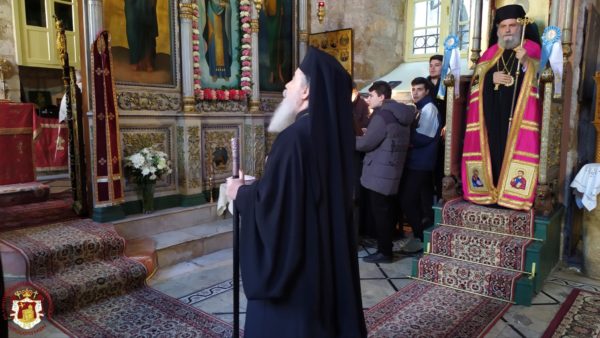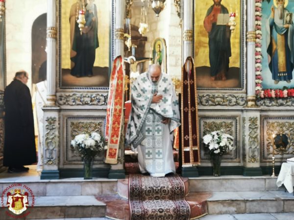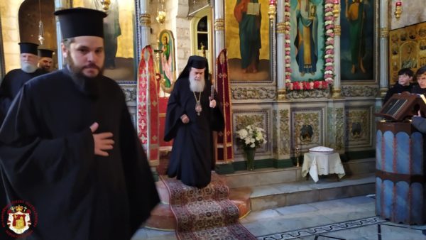Κατά τη διάρκεια της Θείας Λειτουργίας προσήλθε για να προσκυνήσει ο Μακαριώτατος Πατριάρχης Ιεροσολύμων κ.κ. Θεόφιλος συνοδευόμενος από Αγιοταφίτες Πατέρες.