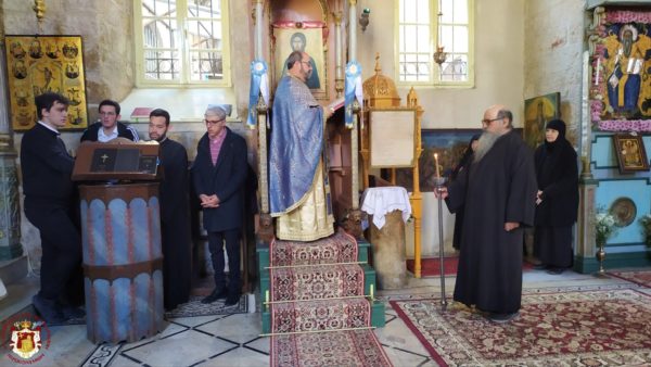 Το απόγευμα της παραμονής της εορτής τελέσθηκε Εσπερινός και το πρωί της κυριωνύμου ημέρας Θεία Λειτουργία προεξάρχοντος του Σεβασμιωτάτου Μητροπολίτη Καπιτωλιάδος κ. Ησυχίου συλλειτουργούντων Αγιοταφιτών Ιερομονάχων, των Αρχιμανδριτών Μελετίου και Κλαυδίου, των Αραβοφώνων Πρεσβυτέρου π. Φάραχ και Ιερομονάχου π. Σύλλα, του Αρχιδιακόνου π. Μάρκου και του Ιεροδιακόνου π. Δοσιθέου.