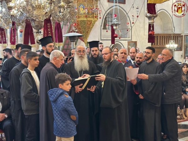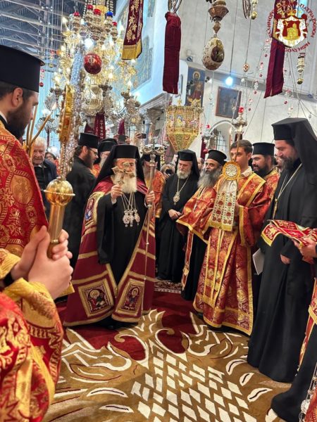 Εχθές, παραμονή της εορτής, ο Πατριάρχης Ιεροσολύμων κ.κ. Θεόφιλος έφτασε στη Βηθλεέμ για να προεξάρχη της μεγάλης εορτής.