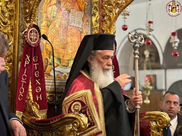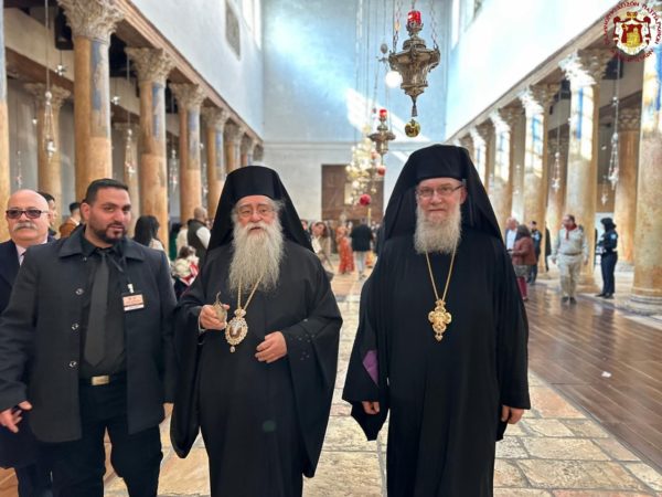 Εχθές, παραμονή της εορτής, ο Πατριάρχης Ιεροσολύμων κ.κ. Θεόφιλος έφτασε στη Βηθλεέμ για να προεξάρχη της μεγάλης εορτής.