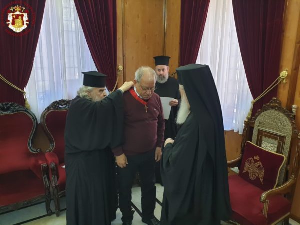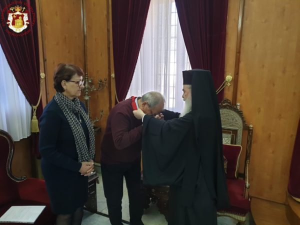 Παράσημο από τον Πατριάρχη Ιεροσολύμων στον Ιεροψάλτη στο ναό της Εξαρχίας του Παναγίου Τάφου της Κύπρου