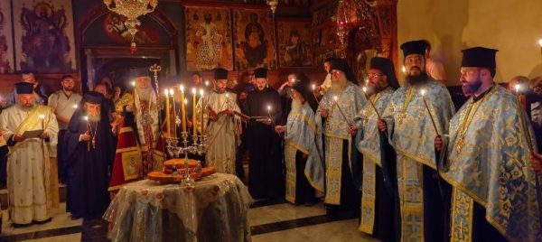 Σήμερα τελέσθηκε στη Μονή του Αγίου Σάββα θεία Λειτουργία αγρυπνία, της οποίας προεξήρχε ο Πατριάρχης Ιεροσολύμων κ.κ. Θεόφιλος, συλλειτουργούντων του Σεβασμιωτάτου Αρχιεπισκόπου Κωνσταντίνης κ. Αριστάρχου, Γέροντος Αρχιγραμματέως, του Σεβασμιωτάτου Αρχιεπισκόπου Ιορδάνου κ. Θεοφυλάκτου Πατριαρχικού Επιτρόπου εν Βηθλεέμ, του Αρχιερέως της σειράς Σεβασμιωτάτου Αρχιεπισκόπου Μαδάβων κ. Αριστοβούλου, Αγιοταφιτών Ιερομονάχων ως των Αρχιμανδριτών Ιγνατίου, Ματθαίου και Νήφωνος, Αραβοφώνων Πρεσβυτέρων εκ Βηθλεέμ, Χωρίου των Ποιμένων και Μπετζάλλας, του Αρχιδιακόνου Μάρκου και του Ιεροδιακόνου Ευλογίου, ψάλλοντος ελληνιστί του Ιεροδιακόνου Συμεών Γραμματέως της Αγίας και Ιεράς Συνόδου.