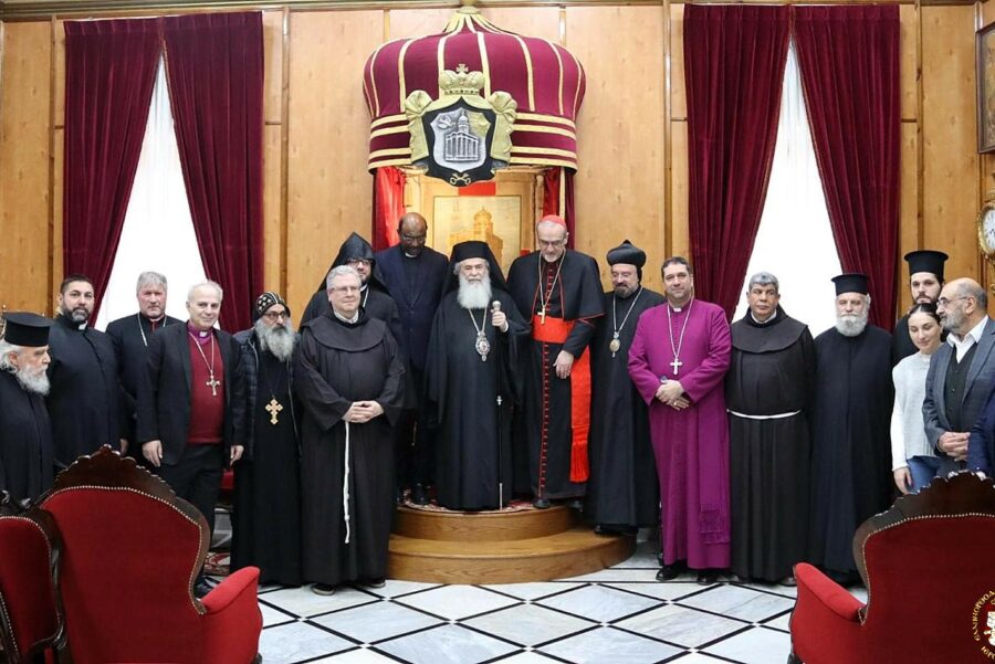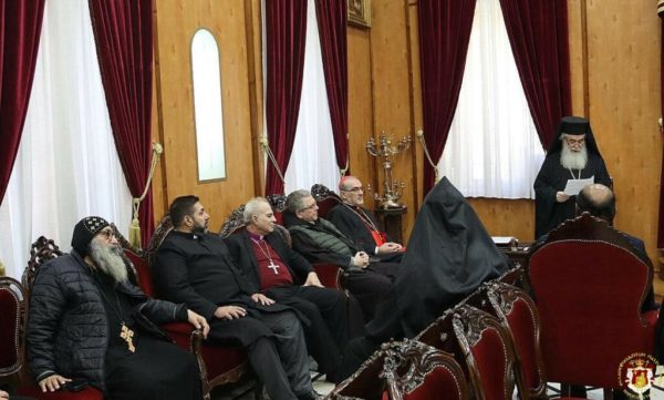 Εἰς τήν συνάντησιν ταύτην συμμετεῖχον οἱ Προκαθήμενοι τῶν ΧριστιανικῶνἘκκλησιῶν εἰς τήν Ἱερουσαλήμ, μεταξύ τῶν ὁποίων: ὁ Λατῖνος Πατριάρχης εἰς Ἱεροσόλυμα Καρδινάλιος Pierbattista Pizzaballa, ὁ Κουστωδός τῆς Ἁγίας Γῆς π. Francesco Patton, ὁ ἐπί κεφαλῆς τῆς ἈγγλικανικῆςἘκκλησίας εἰς Ἱερουσαλήμ Ἀρχιεπίσκοπος Hosam Naoum καί ἐκπρόσωποι τοῦ Ἀρμενικοῦ