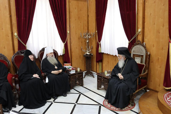 Το Πατριαρχείο Ιεροσολύμων καταβάλει κάθε προσπάθεια για την θεραπεία της διασπασμένης ενότητας της Εκκλησίας τόνισε ο Πατριάρχης κ.κ. Θεόφιλος προς τον Μητροπολίτη Αγίας Πετρούπολης κ. Βαρσανούφιο, Ιεράρχη της Εκκλησίας της Ρωσίας, ο οποίος εχθές, Τρίτη 17 Σεπτεμβρίου, επισκέφθηκε με τη συνοδεία του την έδρα του Παλαίφατου Πατριαρχείου.