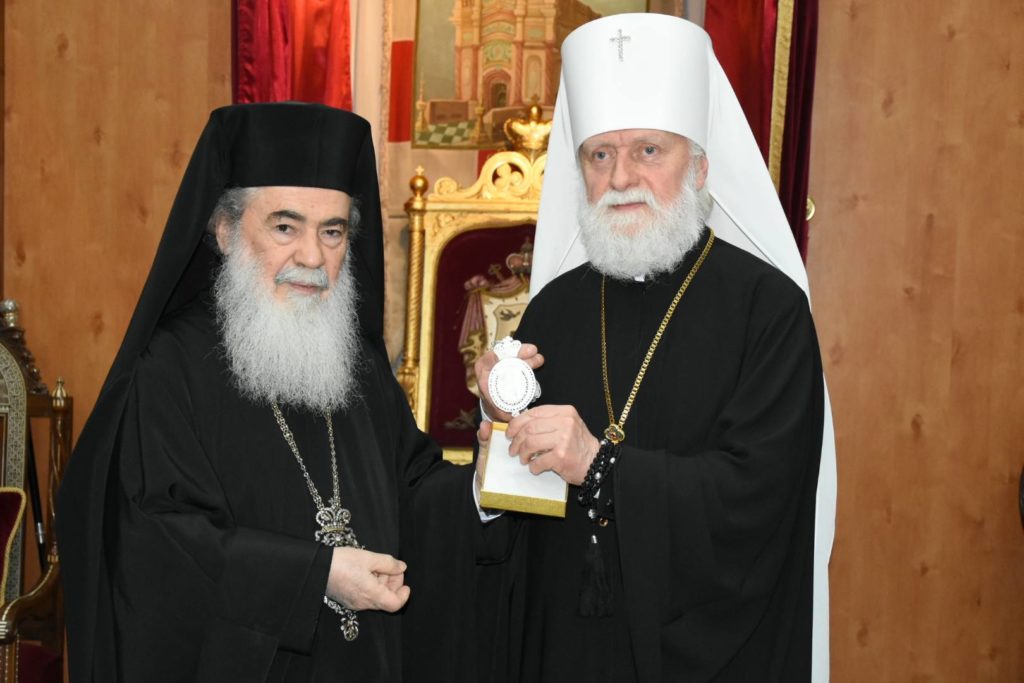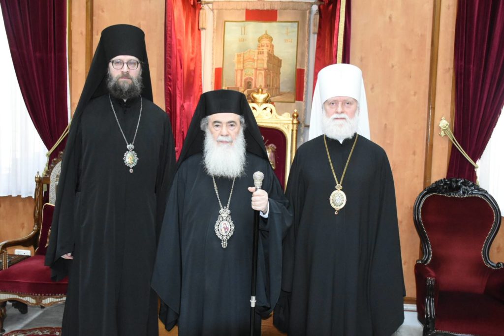 Ο Πατριάρχης Ιεροσολύμων κ.κ. Θεόφιλος υποδέχθηκε χθες αντιπροσωπεία της Εσθονικής Ορθοδόξου Χριστιανικής Εκκλησίας (ΕΟΧΕ) με επικεφαλής τον Μητροπολίτη Ταλλίν και πάσης Εσθονίας κ. Ευγένιο, της δικαιοδοσίας του Πατριαρχείου Μόσχας. Μεταξύ άλλων ανέφερε ότι αν και σε όλα τα κράτη της Ευρωπαϊκής Ένωσης υπάρχει σαφής διάκριση μεταξύ του κράτους και της Εκκλησίας και ότι το κράτος δεν πρέπει να αναμειγνύεται στην εκκλησιαστική ζωή, στην Εσθονία κατά παραβίαση του διεθνούς δικαίου οι κρατικές Αρχές αναμείχθηκαν στη ζωή της Εκκλησίας.