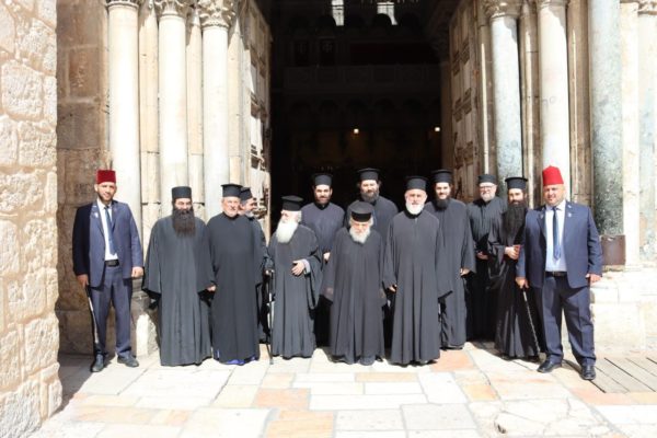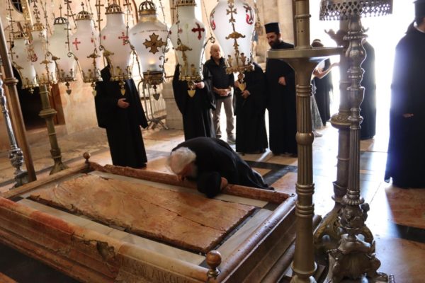 Μπροστά στο φρικτό γεγονός του πολέμου που έχει στοιχήσει έως τώρα τη ζωή σε χιλιάδες Παλαιστινίους και Ισραηλινούς, κυρίως άμαχο πληθυσμό, τα μέλη της Αγιοταφικής Αδελφότητας βρέθηκαν στο σημείο όπου ο Σωτήρας και Λυτρωτής του κόσμου τούτου, θυσιάστηκε προσφέροντας το αίμα του λύτρο για τη σωτηρία του ανθρώπου.