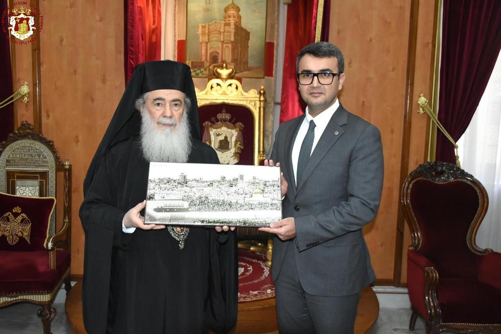 Συγκεκριμένα, ο Μακαριώτατος υποδέχθηκε τον Πρέσβη του Αζερμπαϊτζάν στο Ισραήλ, Taleh Nazarl και τον κ. Ravan Hasanov, Executive Director of the Bacu International Multiculturalism Center. Αμφότεροι τον συνεχάρησαν για την ποιμαντική και πολυπολυτισμική δραστηριότητά του στην διασφάλιση του καθεστώτος των Αγίων Τόπων και τον προσκάλεσαν να επισκεφθεί το κράτος τους, το οποίον διαφυλάσσει την Μουσουλμανική αλλά και την Χριστιανική κληρονομία, όπως είπαν.