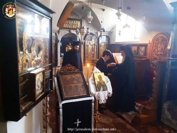 Σήμερα το πρωί, μετά την ακολουθία του Όρθρου στον μοναστηριακό Ναόν των αγίων Κωνσταντίνου και Ελένης, ο Πατριάρχης Ιεροσολύμων κ.κ. Θεόφιλος ρασοφόρεσε τέσσερεις δοκίμους της Σχολής Σιών, δύο της Α΄ και δύο της Β΄ Λυκείου, ως αρχή της δοκιμασίας, για να ενταχθούν μετά την αποφοίτηση στην Αγιοταφιτική Αδελφότητα.