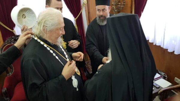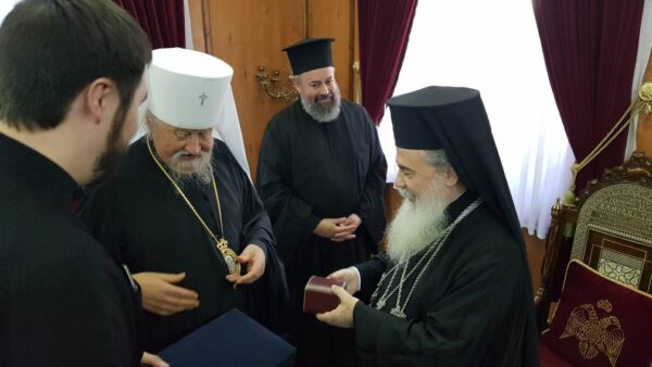 Τον Σεβασμιώτατος και την συνοδεία του καλωσόρισε ο Μακαριώτατος Πατριάρχης Ιεροσολύμων κ.κ. Θεόφιλος.