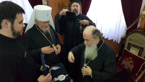 Στη συνέχεια ακολούθησε ανταλλαγή δώρων μεταξύ των δύο πλευρών με τον Ρώσο Ιεράρχη να ευχαριστεί τον Μακαριώτατο για την υποδοχή.